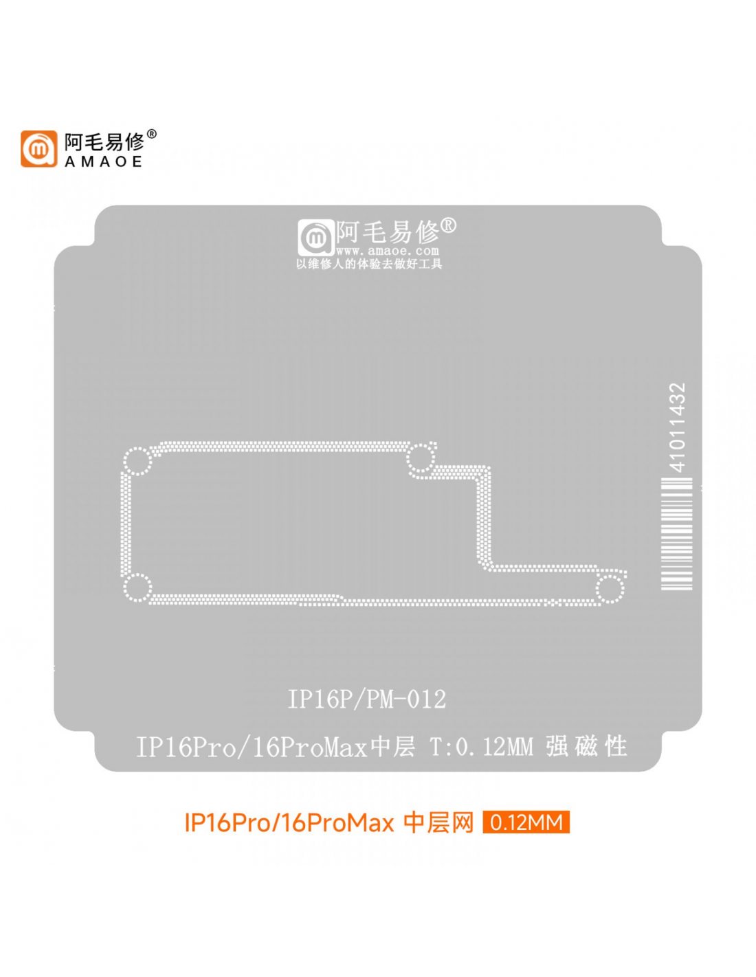 Amaoe IP16 Pro/ 16 Pro Max-012 – BGA Reballing Stencil 0.12mm for iPhone 16 Pro/ 16 Pro Max (Middle Layer)