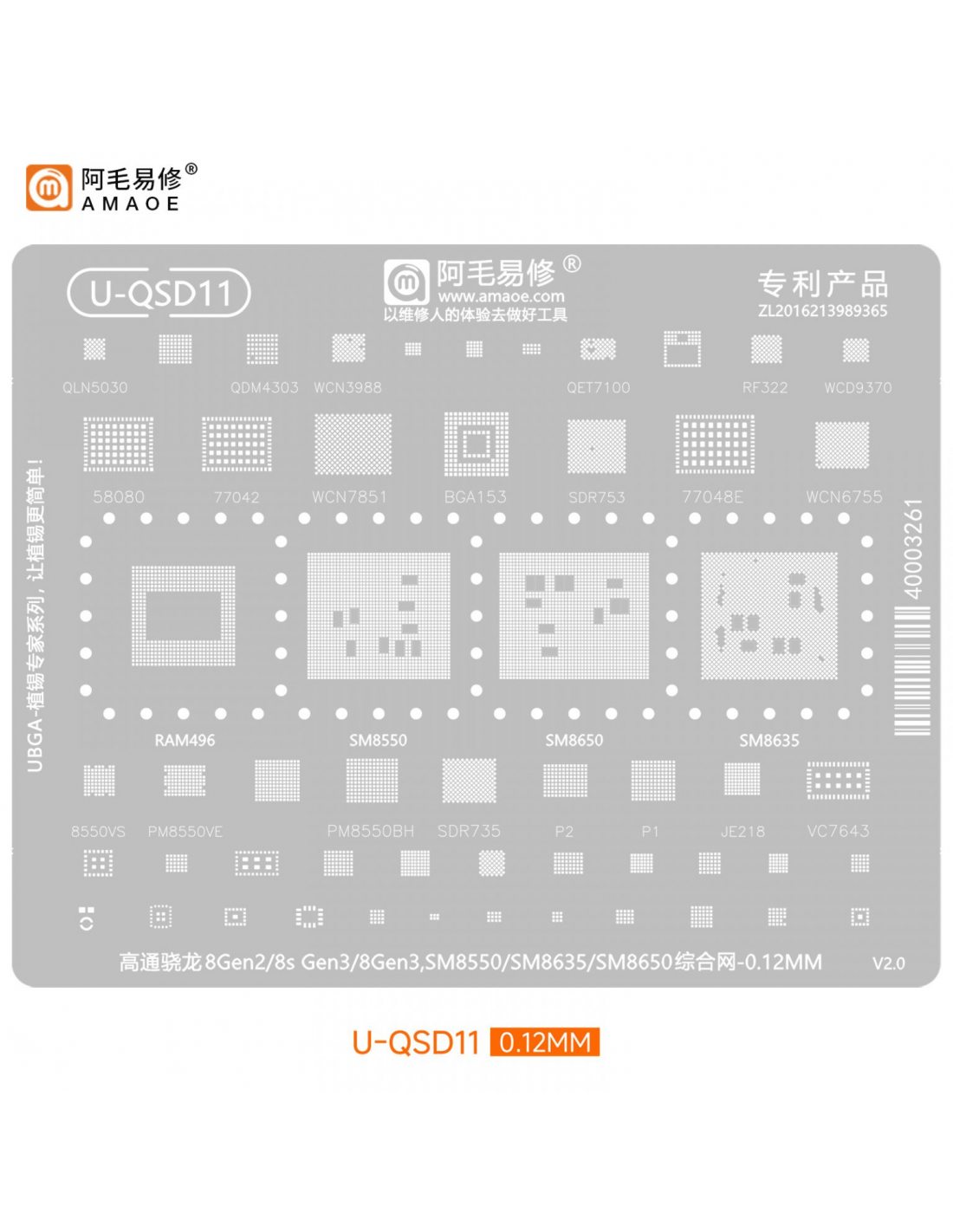 Szablon do rebalingu Amaoe U-QSD11 0.12MM – Snapdragon Gen2/Gen3/8s (SM8550, SM8650, SM8635)
